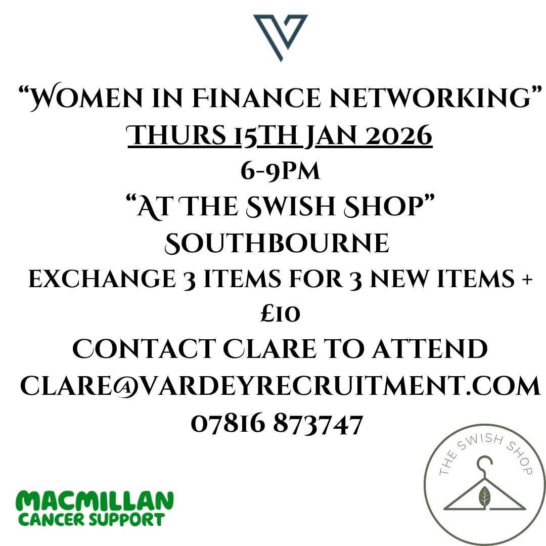 Join us for a fun and relaxed Finance Ladies Swap & Connect Event on THURSDAY 15th January 2026 at Swish Shop, Southbourne, BH5 between 6pm and 9pm. You can arrive anytime before 8pm.